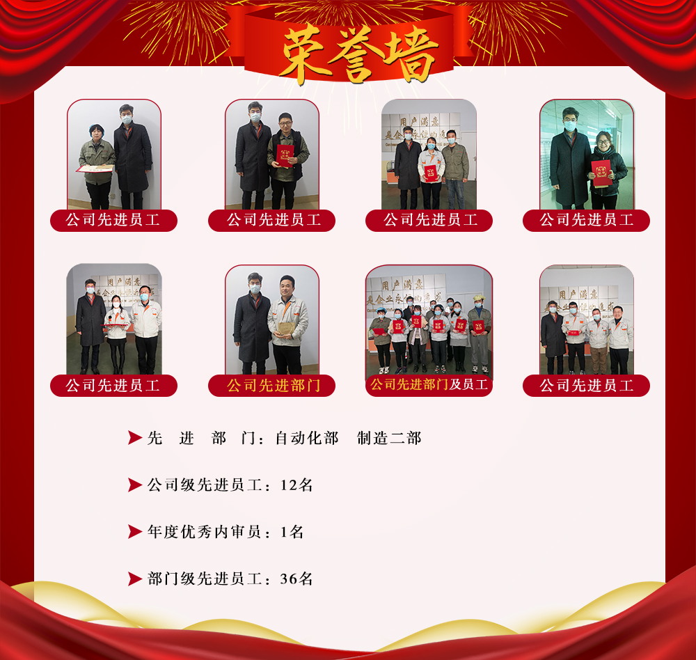 為鼓勵公司員工在新的一年里繼續秉承“團結敬業(yè),真誠合作,思危自強,創(chuàng )新進(jìn)取”的工作方針,發(fā)揚“敬業(yè)、誠信、團結、創(chuàng )新”的企業(yè)精神,特對先進(jìn)集體、先進(jìn)員工通報表彰,并頒發(fā)獎品。